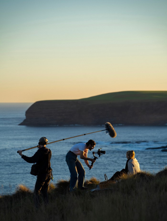 We shot this film at Flinders Cliff, which is one of the most beautiful locations in Victoria. We have always wanted to shoot at this location but have never found the perfect project until Zombie came along, as having it on a cliffside was always the plan for this shoot. We went down for a test shoot which was very helpful. We knew that the sun would set behind the cliffs, but we ended up losing the light a lot quicker than expected. So at the test shoot, the sky was darker and had a purple hue, which while still beautiful, wasn’t the look we were going for. So on the day of shooting, we went an hour earlier to make sure we got the perfect golden hour, but in reality, it was probably only 30 minutes. So we had 30 minutes to get the 3 shots for the film. This was a bit stressful as you always want more time to really give yourself space to get into the moment and make sure the shot is perfect, but I think working with those constraints made it better as everyone was on their A game. It also meant I couldn’t get in my own head and just had to trust the process.