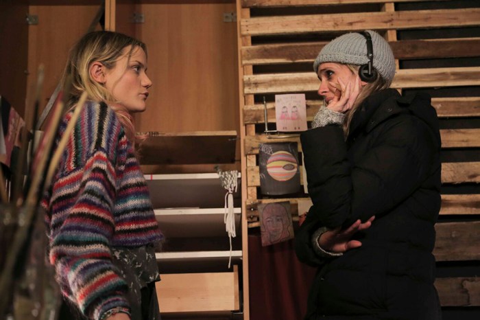 Actor Anna Samson on the set of What If It Works? with director Romi Trower.