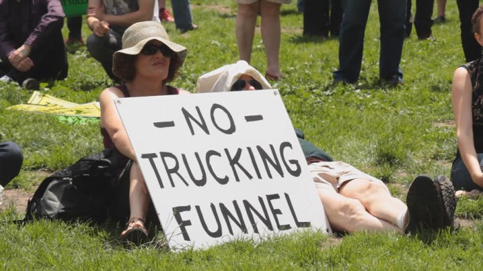 One Tunnel Picket campaign initiative involved activist Sue Jackson taking hundreds of photographs of community members holding small placards with slogans like Rip Up The Contracts; We Want Better Public Transport; We Want Trains Not Toll Roads. This photomontage became a powerful visual statement on what communities wanted.