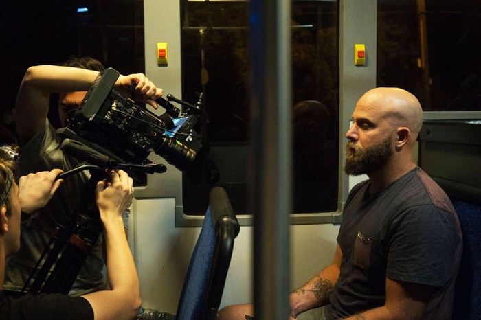Yure Covich on the set of In The Red. Photo by George Maher.