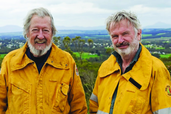 Michael Caton and Sam Neill on location in Mt Barker, WA. Photo by Merlyn Moon.