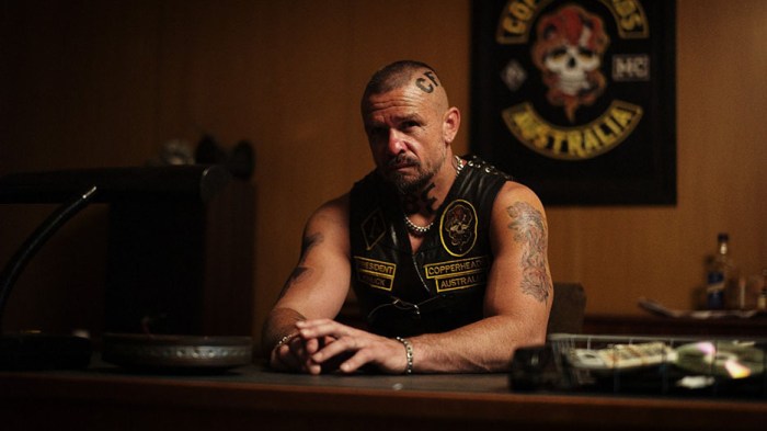 Most of our Copperheads extras were either ex members or social members of motorcycle clubs. They all love the film and feel it’s really authentic. We also had a military advisor on set who is an ex one percenter. He watched the film in Sydney and was over the moon about how well the film stood up in terms of authenticity with the understanding we’re telling a story and we’re not telling a documentary. There will certainly be one percenters who come out of this thinking the story is bullshit, but I’m sure if you asked anyone who is part of the mafia what they think of cinema renditions of their world, they’d think the same thing. We tried to be as authentic as possible while still trying to create our own world.