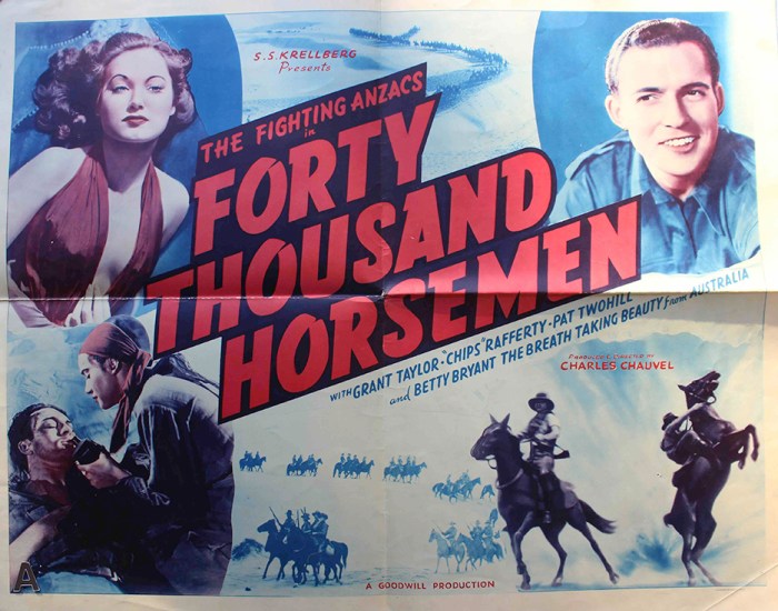 After Uncivilised, Chauvel made the film Forty Thousand Horsemen, based on the Australian Light Horsemen and their exploits in the deserts of Sinai in WW1. Chauvel had an affinity with the story because his uncle, Sir Harry Chauvel, had been the general in command of the WW1 desert campaign.
