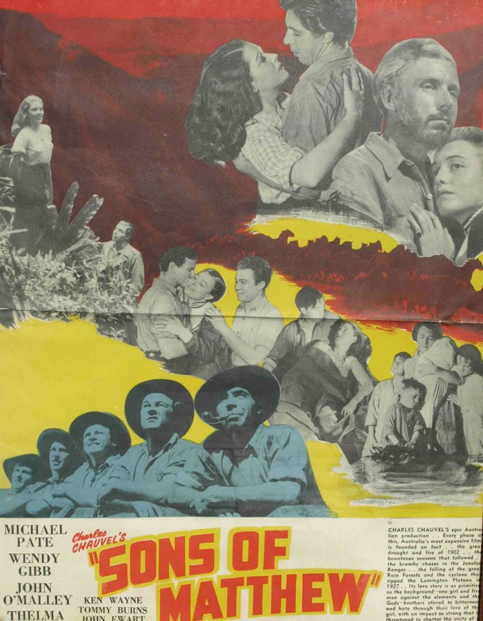 One of my favorite Chauvel films is the 1949 Sons of Matthew film about the pioneering O’Reillys family. The film had instant success in Australia, and was shown widely overseas – UK, US, Spain, Denmark, and the Czech Republic. In the UK the title was the same as in Australia, but in the US it was renamed The Rugged O’Riordans.