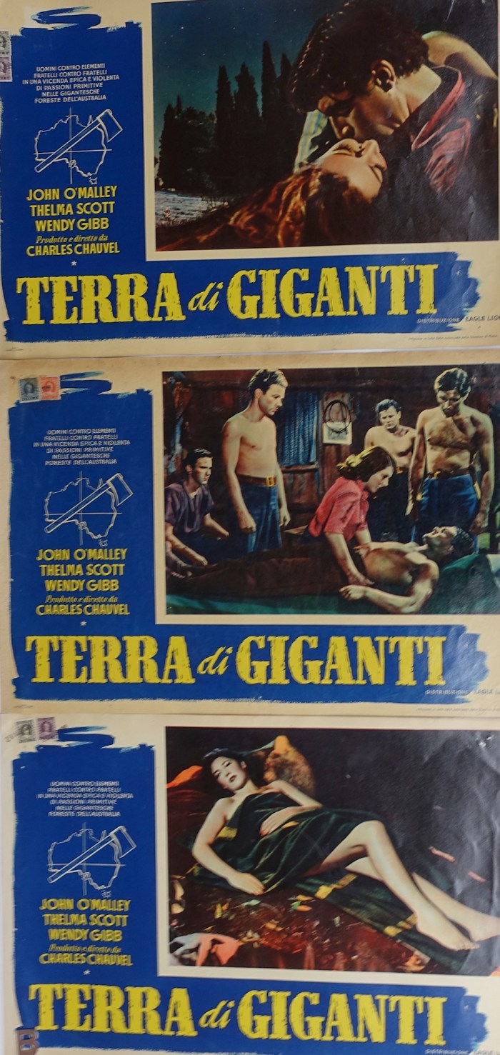 I have been interested in Chauvel’s films for over 30 years, and have been researching how these films have been advertised around the world. Advertising in the early years of films was mostly achieved using movie posters. Movie posters came in different sizes – examples include large billboards that hang out the front of cinemas, one sheets (size 69cm × 104cm), day bills (size 33cm by 76cm), and lobby cards (28cm × 36cm). Special print houses were often employed to create the artistry of the movie posters, and it is interesting to see the diverse range of artistry used to promote Chauvel’s films around the world.