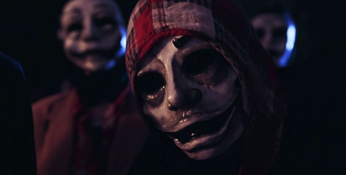 Here, the film explodes into a juicy thriller, as Ben and his loved ones are pushed to their limits… taunted by mysterious criminal group ‘Cannon’… with masked Happyface at the helm. Things get violent fast, when these psychos seek a sick form of ‘justice’.