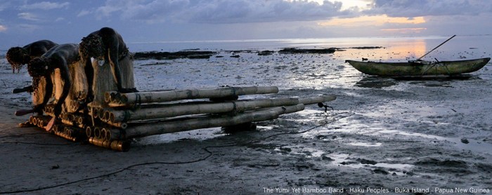 4 – ‘To only use the instruments of your homeland’. The instruments of that place, literally as in the case of the Yumi Yet bamboo band who cut and tuned the bamboo whilst we were there in the village. We used the bamboo orchestra to replace the acoustic guitars a few artists played as a guide tracks. There are no western instruments in the film or soundtrack, because they speak of relationships to another country.