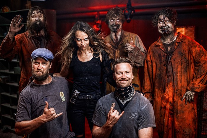 Kiah Roache-Turner, Bianca Bradey, Tristan Roache-Turner and some badass Zombies on the set of Wyrmwood Apocalypse. Photo by Emma Bjorndahl.