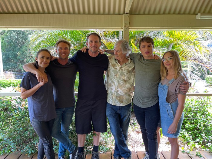 Lauren Grimson, Lincoln Lewis, Chris Sun, John Jarratt, Jade Kevin Foster and Angie Kent on the set of The Possessed.