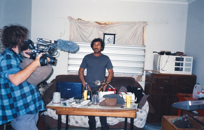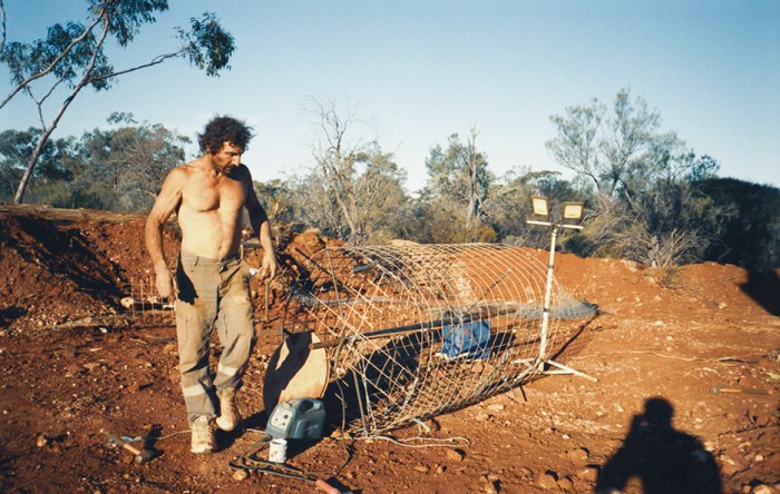 I spent a lot of time with John. A lot of the time it would just be me and John. A normal day with John is you arrive and John has his agenda for the day. His life is always overwhelmed by a series of bullet points he imagines he has to tick off. Like, “I’ve gotta fix the Bobcat. I’ve gotta create a swimming pool. I’ve gotta fix the roof of my campsite.” I remember filming and knowing there was nothing I could do to change this. I’d sometimes rock up and be like, “Hey, we should go down to this wonderful salt lake to film a scene of you prospecting.” And then John would be like. ” I can’t. I’m fixing the Bobcat and I’m fixing the roof and I’m creating a swimming pool.” [Laughs]. I had to learn to just be a companion to John. I think he definitely enjoys the company of others. The two of us would just sit down on a bit of dirt and he’d just go into these long monologues about his thoughts, or his life. I was quite excited to just be a listener to these thoughts and conversations at night. We’d play a bit of guitar together. He was training me up to harmonise with him to Beach Boys songs and all this stuff. He’s a very sweet and a very smart man. He was always kind enough to cook lamb shanks for me at nighttime as well. We’d have dinners together and then look at the stars, all that kind of stuff. He is highly intelligent. He was a state chess champion at one point. He’s devised all his own ways to find pi that are unique to his own mathematics. He’s highly intelligent.