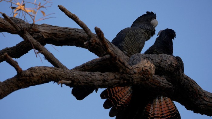 Meanwhile the Baudin’s Black Cockatoos are literally being shot out of the sky in an unequal battle for food with apple and pear growers in Perth’s hills. And the Forest Red-Tailed Black Cockatoos are under threat from the loss of nesting hollows and declining habitat.