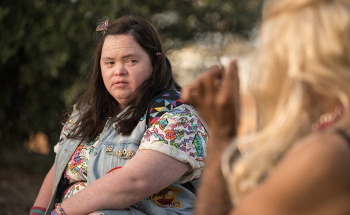 Sparkles (13 mins). A 30-something-year-old woman with Down Syndrome leaves her past behind, and runs away from a small country town, heading towards the city. Along her journey, she makes an unlikely friendship with an Outback drag queen, teaching us all not to be afraid to celebrate who we are. Directed by Jacqueline Pelczer, produced by Cody Greenwood, and written, starring, and co-produced by Tina Fielding.