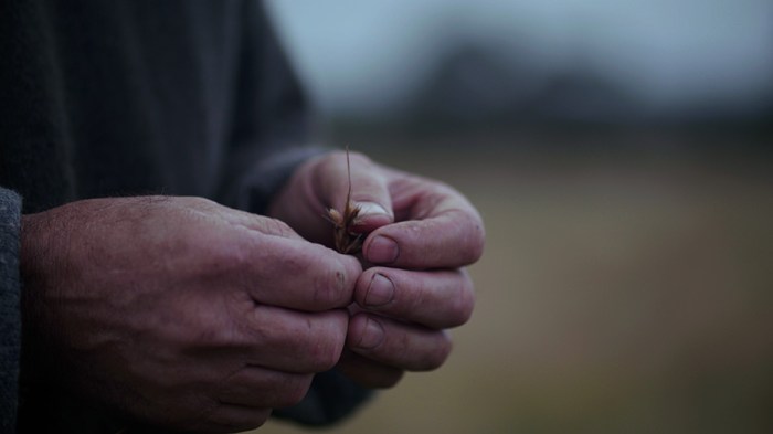 Landholder John Lakey of Sunbury observes Kangaroo Grass flowering in Episode 3 – Striving for Complexity.