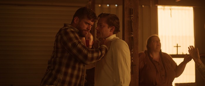 When I saw the character brief and the real-life person they were basing this Daniel James King character on, I said, “I know this guy!” Tim grew up in a very unique religious situation. He also had the same eyes as this person. The subtleties that Tim brings to this role are incredible. He is obviously a very stunning, very fit man, but to watch him perform this role was extraordinary. He was very interactive with our beautiful congregation of zealots and featured extras. He’d talk with them about the process, share his ideas and thoughts, and tell them about his childhood and how it relates to what he was doing with this film. It was fascinating to watch. It really was one of those lightning-in-a-bottle things. We worked together previously on Red Billabong. I called Nick Kozakis at three a.m. saying, “I’ve got the guy for this role!” He’s great in this role, but the real-life experience he brings to it takes it to another level.