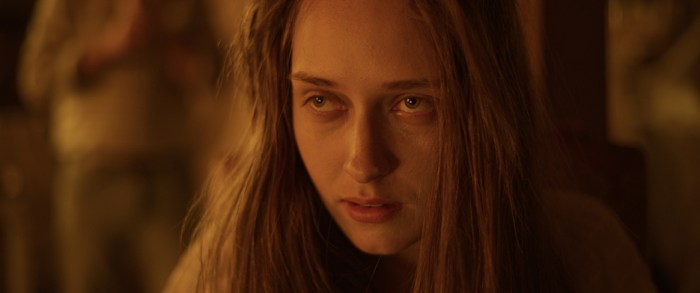 Oddly enough, it did. Weird stuff would happen. We had rain, thunderstorms, heatwaves, cameras falling over on their own. We had locusts that would just come and flood our frame for no reason. And it’s in the film when the congregation is praying outside before they’re about to have their supper, and you see all those bugs flying out. We didn’t plan that. They just happened to come into the frame during that time. That was bizarre. The weirdest thing was Liam Kelly, who was one of two editors on this; he was editing, and our producer Lauren came to check in on him, and he had never had a blood nose before, and he was profusely bleeding during the second exorcism scene as he was cutting it. And then as soon as he stopped cutting it, his blood nose stopped. That was so bizarre. But everyone has their own stories. Georgia moved from location to location. We had beautiful accommodation and everyone was fine. People that stayed there before her were fine. People that stayed after her were fine, but she had these centipedes that were falling from the roof. She had spiders that were crawling around her body. It was just so strange.