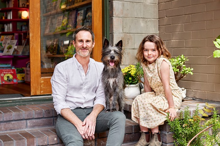Runt author Craig Silvey (left) with Lily LaTorre (Annie) right, and Squid (Runt) middle. Photo by Court McAllister.