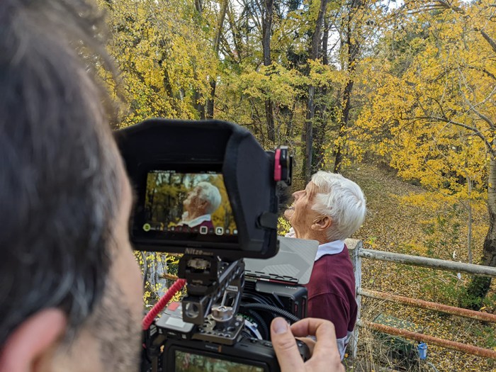 Director Marion Pilowsky, Isla and DOP David Roberts on location. Photo by Sam Oster.