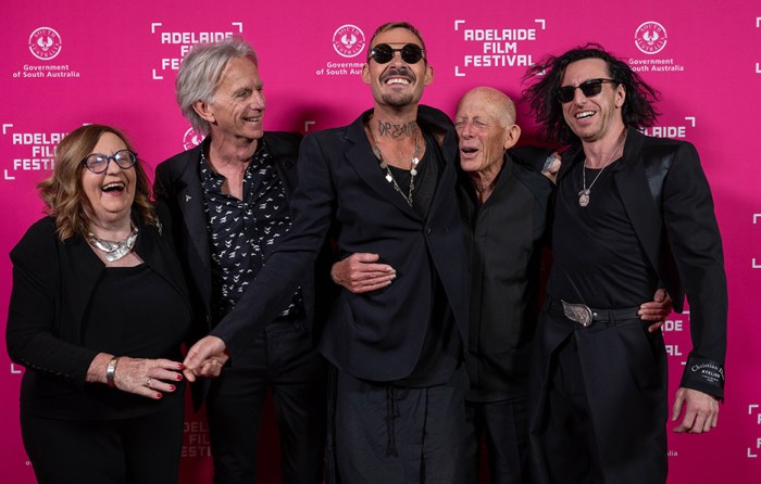World premiere of The Musical Mind… A Portrait in Process as part of the Adelaide Film Festival at Capri Theatre in Goodwood. L-R Kerry Heysen, Scott Hicks, Daniel Johns, David Helfgott and Jethro Heysen-Hicks. Photo by Naomi Jellicoe.
