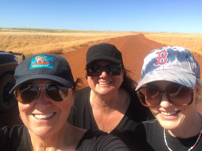 L-R: Red Rock Run producer Miriam Stein; writer Meg Shields and director Cathy Randall on location near Karratha. Image credit: Tama Films.