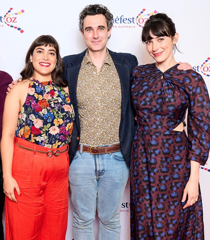 L-R Mahveen Shahraki, Mark Leonard Winter and Geraldine Hakewill at CinefestOZ in 2023.