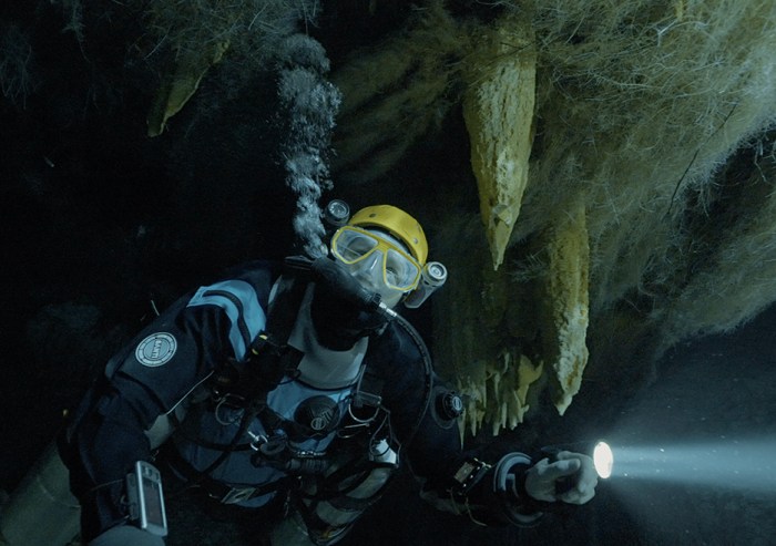 I had no intention of being a passive observer while my colleagues risked their lives to capture the story on film, especially when it came to the underwater sequences. So I undertook the gruelling journey of becoming a certified cave diver on a rebreather, something which had never been done before amongst film directors. I descended alongside the cast and crew into the depths of the caves, well beyond the reach of recreational divers. It was an arduous yet exhilarating experience to dive, work, and learn alongside some of the world’s most renowned cave divers. Despite the monumental difficulties and inherent risks in directing a crew of cave divers, I would embark on this adventure again without hesitation.