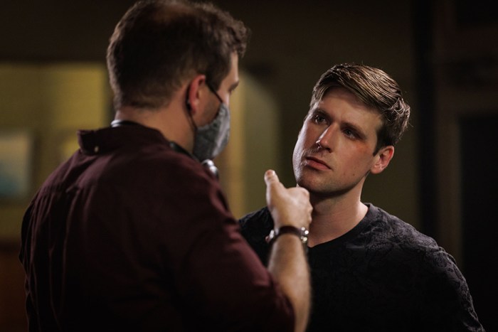 Lyn came via a casting director. Lyn has had things happen in her personal life similar to what her character is going through. A lot of the time with actors, you do find that the ones who do the best screen test are the ones who have had something similar happening in their own life at the time. And sometimes you only find that out later on down the line. It’s almost a way of exorcising through their performance some of what’s happened in their real life. When we first met, Lyn came to Riley’s house. She’s quite into method acting and improvisation, and we did a really long session at Riley’s house. We were there for hours with Lyn and Riley just sitting there in character essentially, and I was playing a nurse, and then Lyn was playing Trish and Riley was playing Nate. Nate is the brother who’s been left to look after their mum while Ged has run away to Perth. It was a brilliant experience to just be there for that long with these two in character without a script or cameras. It was great. We explored so many things. I was just talking to the actual characters, Trish Taylor and Nate Taylor, while I was under the guise of this nurse character. And then we set up a few scenarios. I really wanted to drill home the difficulty of the dementia for Nate. So we did this thing where I got him to come in again and again and again to kind of say hello to his mum as if he was greeting her every morning, and then she was increasingly difficult every time he came in. We kept doing that again and again and again. [Laughs]. I think by the end of it, Riley was getting pretty fed up, but I think it really drove home this idea of the fact that dementia is unrelenting and it doesn’t stop. That was a great experience for me.