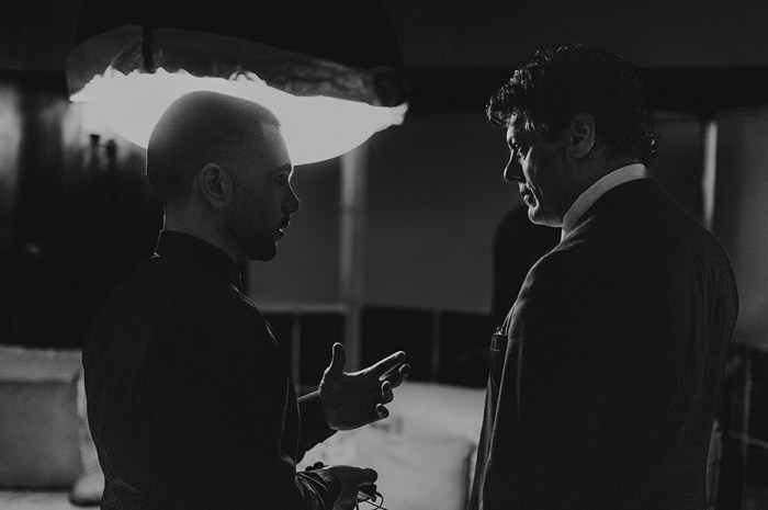 Michael Papaeleftheriou and Shane C. Rodrigo on the set of Crossroads.