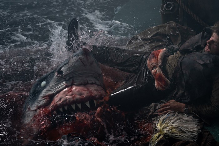 Not really. It’s the look and feel of the thing. My approach to monsters generally is that they’re mythical. I like the idea that we don’t know much about this shark. One of my favourite things about Alien is that you just don’t know. There’s not a lot of backstory in the first film. So this shark is scarred up, and she’s clearly had a lot of fights. She’s a barroom brawler. She’s tough as guts, and she’s going to eat ’em all. [Laughs]. We toyed with the idea of her being the same shark that killed Leo’s brother. That was always going to be a backstory, but a lot of people told me it wasn’t a great idea. So I scrapped it. I thought it was pretty cool, but hey, what do I know? I’m just the writer and director, right? [Laughs].