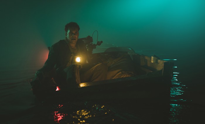 I do agree. Beast of War is visually splendid, and I have to credit a lot of that to my DoP, Mark Wareham, who I think is one of the best DoPs in the country. His prior film and television work speaks for itself. He did The Drover’s Wife and Boy Swallows Universe. He’s very good. And so is Esther Rosenberg, my production designer. She’s such a brilliant designer. Esther and I were planning the look of the film way before we started shooting. We do a thing called pre-pre-production, which is where we spent months and months planning this. We originally thought we were going to shoot Beast of War in this giant outdoor tank in Malta, which would’ve resulted in a very different film visually. It would’ve been more realistic, but also, in a weird way, more flat, because you’ve got the ocean, which is greeny-blue. You’ve got the sky, which is blue. It’s not a very expansive palette because there’s not much you can do unless you’re shooting at night to colour things up. We were told we couldn’t shoot in that tank because Spielberg was using it—which I thought was wonderfully ironic, because every shark film ever made has stolen its premise from Spielberg originally. [Laughs]. So the only option left was to build this gigantic tank at Screen Queensland Studios. That gave us the option to create this hyperrealistic, deeply saturated colour palette that was very much inspired by Bram Stoker’s Dracula. I was like, “What if we did Nosferatu with a fin?” Both Esther and Mark got very excited by that, and we worked hard to make this palette insanely beautiful. We also worked on the idea that the less you see, the better. By trapping these characters in this giant fog bank, we didn’t have to worry about seeing the edges of the tank or the edges of the indoor studio we were shooting in.